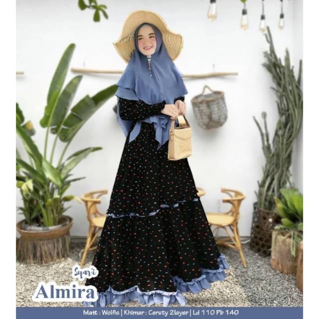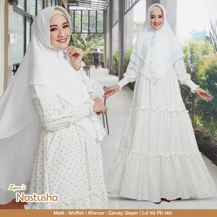 Gamis Syari Shr Almira Bahan Wolfis Motif Busui Ld 110 Pb 140 Khimar Ceruty 2 Layer Gamis Murah Shopee Indonesia