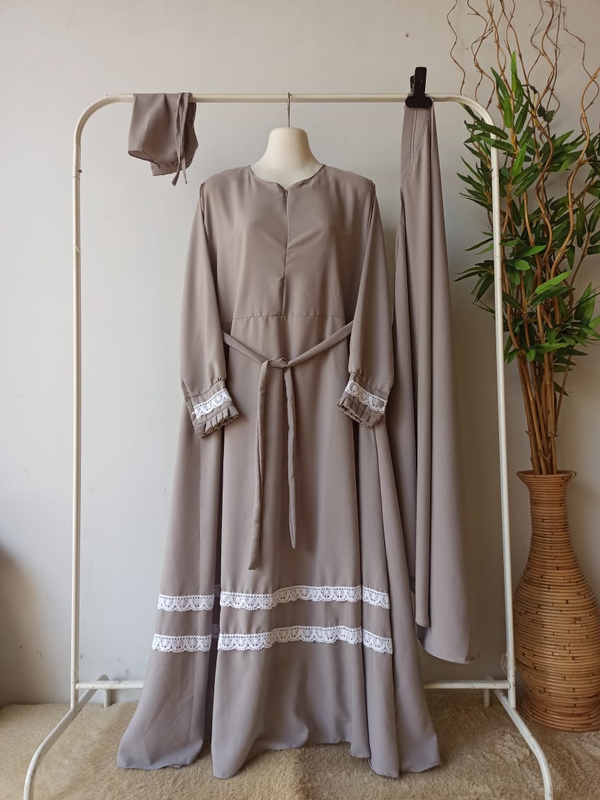 Jual Set Gamis Polos Syari Cadar Renda Zayna Grey Wolfis Premium Syar Iku Kota Tasikmalaya Gamis Syari Cadar Tokopedia