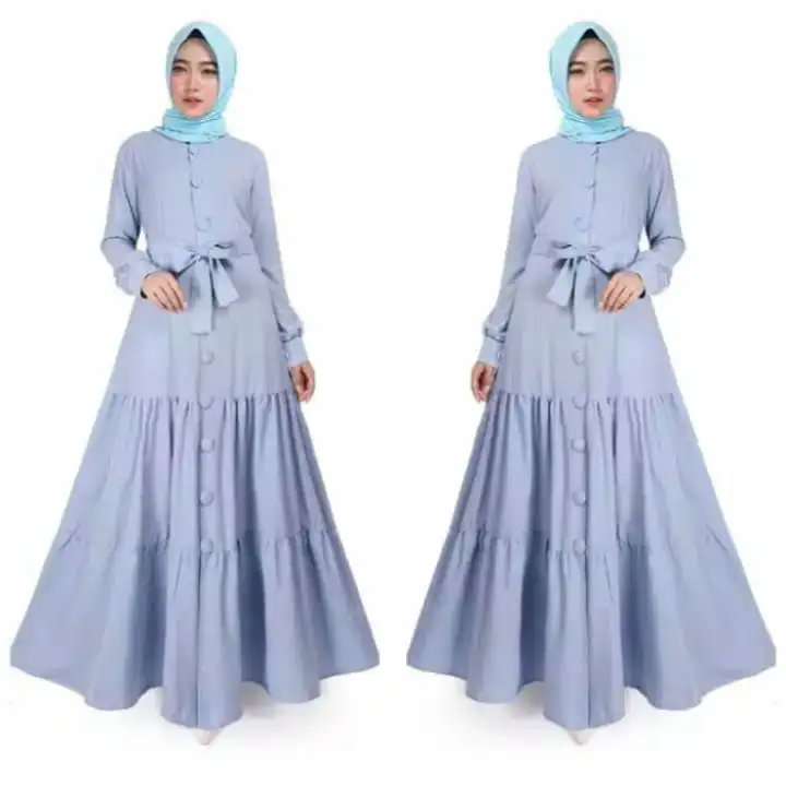 Gamis Kancing Depan Full Bahan Katun Busui Mayung Dusty Pink Biru Denim Abu Abu Tua Dark Grey Terbaru 2020 Lazada Indonesia