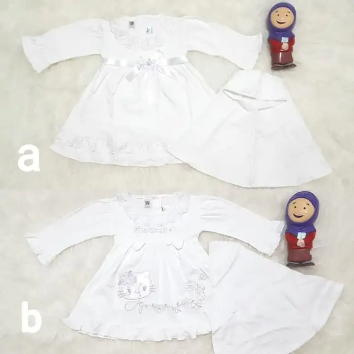 Baju Gamis Anak Bayi Perempuan Newborn Aqeqah Putih Set Jilbab Renda Sedia Setelan Anak Laki Laki