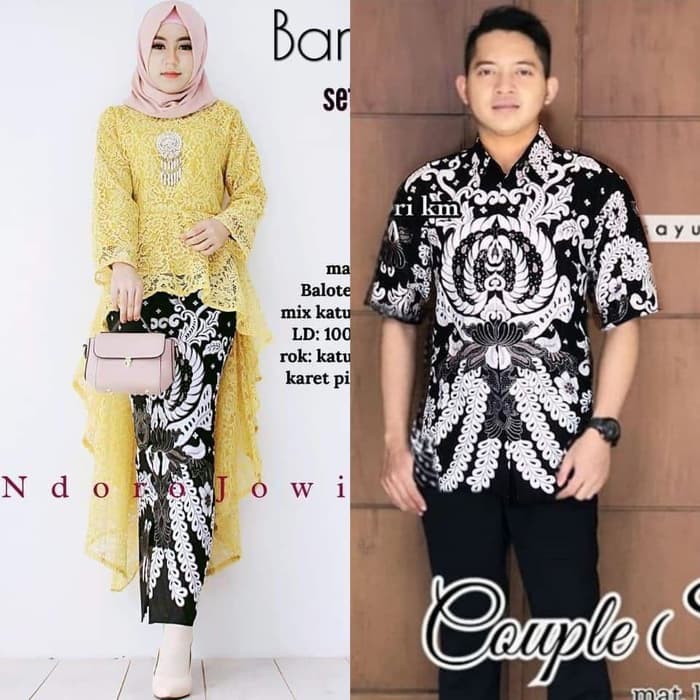 Couple Gamis Aksara Batik Sarimbit Busana Muslim Kombinasi Brokat Fashion Kekinian Pesta Party Shopee Indonesia