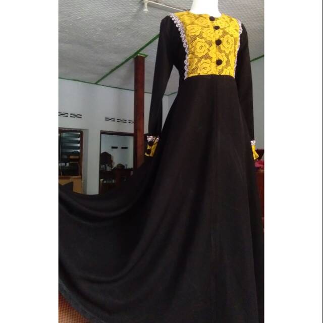 30 Model Gamis Brokat Kombinasi Modern Terbaru Polos