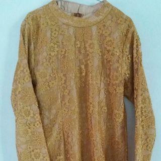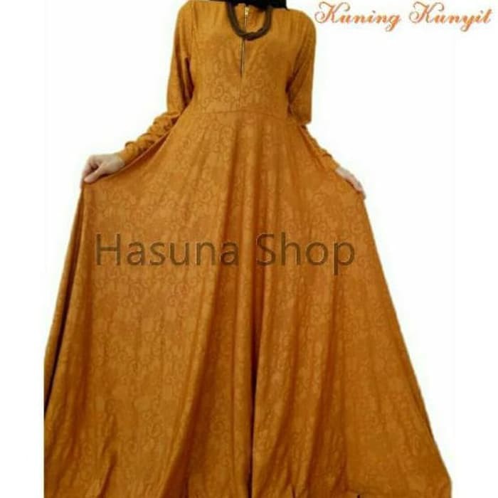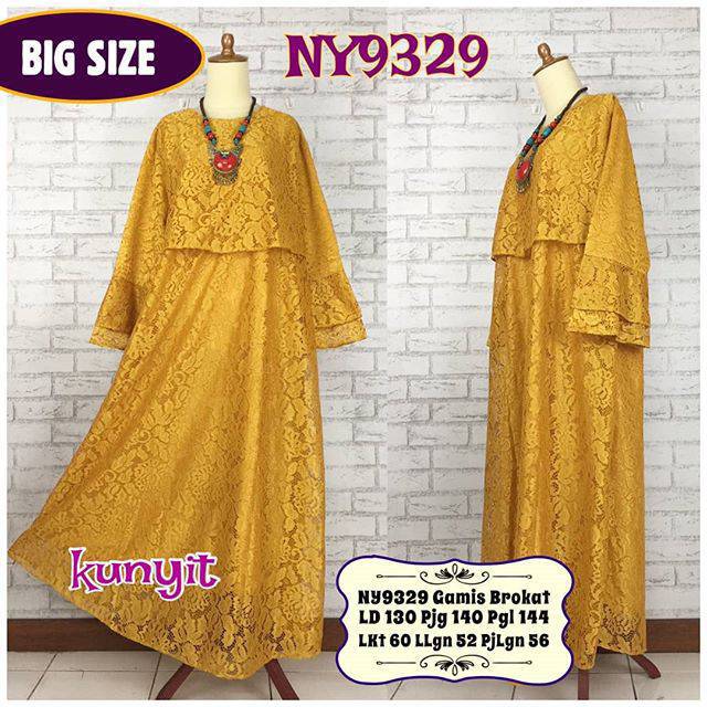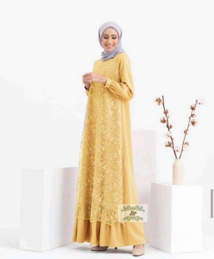 Model Baju Gamis Brokat Kuning Kombinasi Polos Gaun Formal Panjang Gaun Formal Kuning