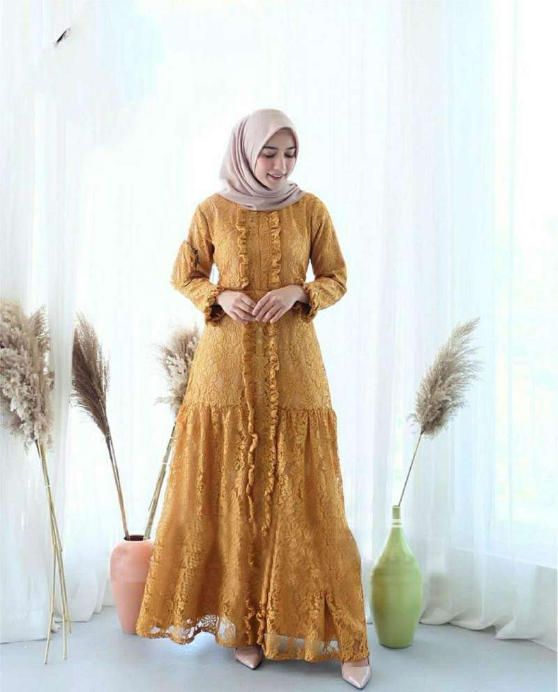 Best Seller Gamis Muslim Wanita Maxi Dress Brokat Himalaya Mewah Gamis Muslim Brokat Hijab Terbaru