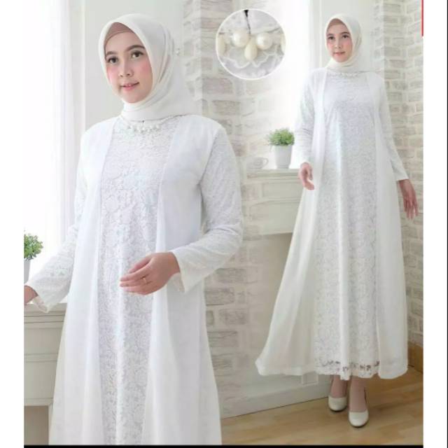 Agnes H W Baju Gamis Putih Wanita Brukat Gamis Brokat Lebaran Umroh Haji Busana Muslim Perempuan Gamis Pesta Cewek Terbaru B003 Lazada Indonesia