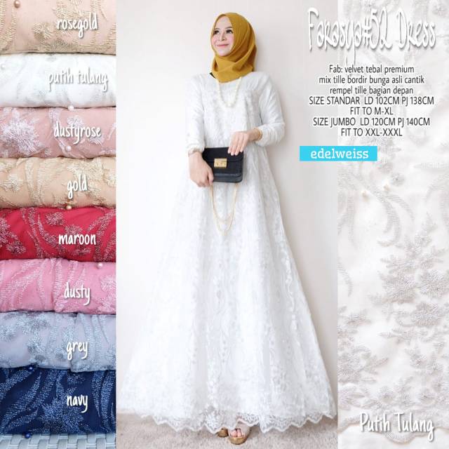 Jual Gamis Brokat Jumbo Putih Tulang Gamis Best Seller Gamis Lebaran Fashion Maharani Tokopedia