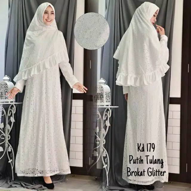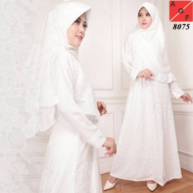 Promo Set Gamis Brukat Khimar White Akad Dress Wedding Putih Tulang Busana Muslim Wanita Baju Muslim Perlengkapan Sholat Fashion Wanita Bukalapak Com Inkuiri Com