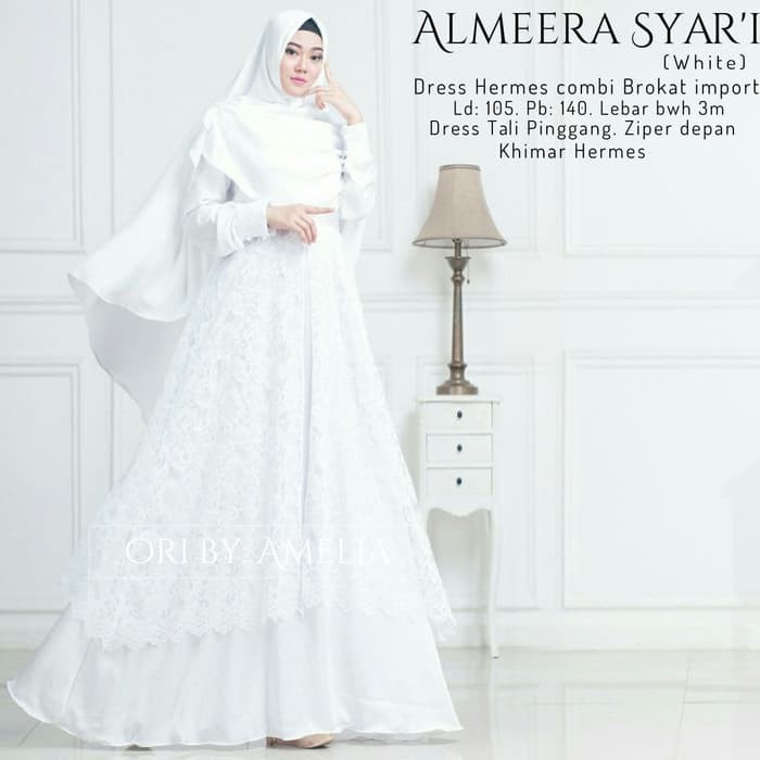 Super Sale Almeera Brukat Syari White Allsize Gamis Akad Wisuda Cantik Aml Shopee Indonesia