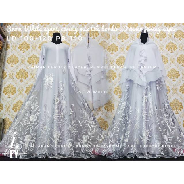 Set Gamis Syari Baju Muslim Pesta Mewah Akad Nikah Putih Tile Bordir Brokat 3d Glitter Busui Jumbo Shopee Indonesia
