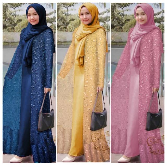 Bayar Ditempat Unbeatable Gamis Terbaru Aura 2021 Nadiem Fashion Muslim Setelan Gamis Brokat Tile Mewah Mutiara