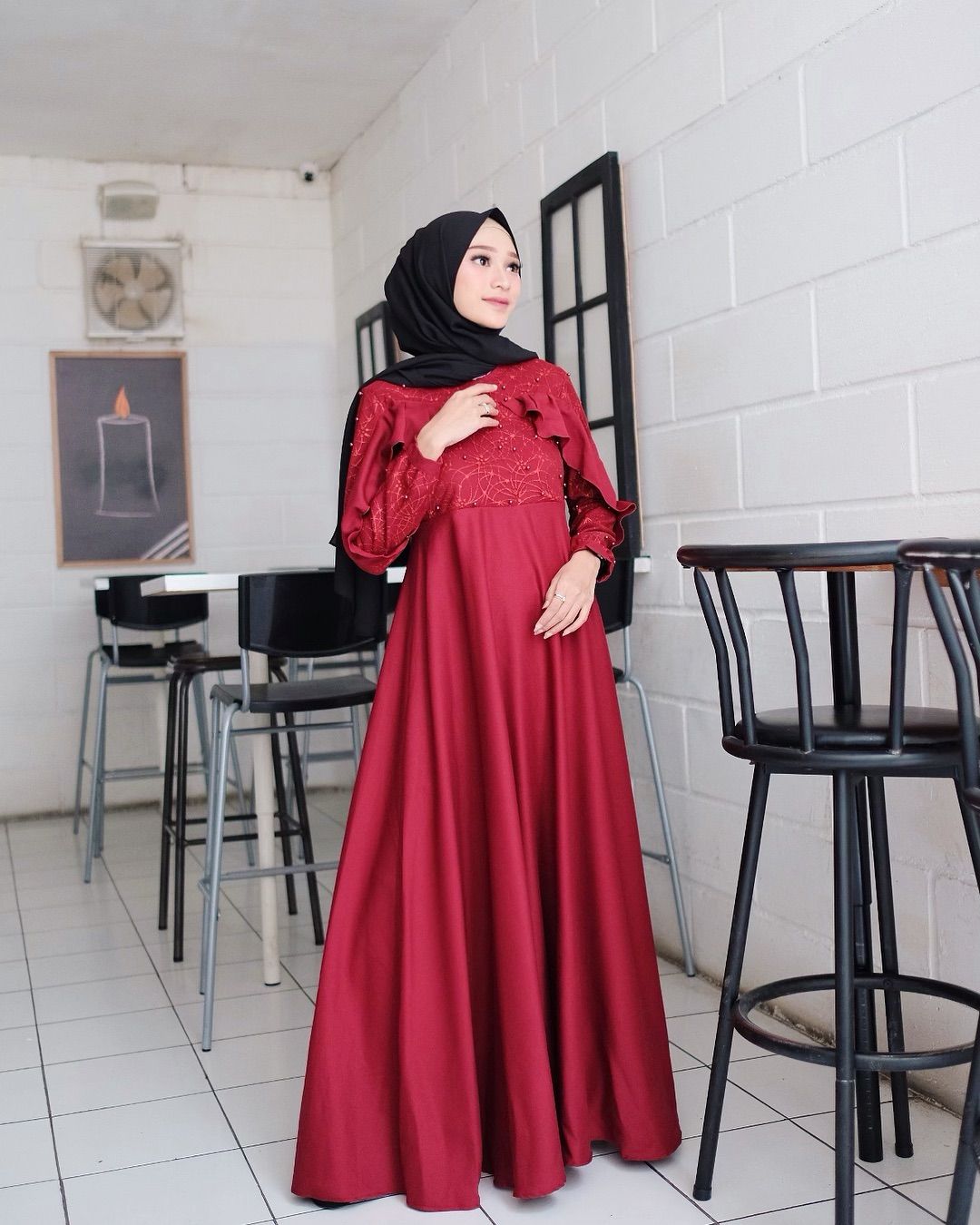 3 Model Dress Hijab Merah Aksen Brokat Buat Tampilan Kondangan Elegan Semua Halaman Cewekbanget