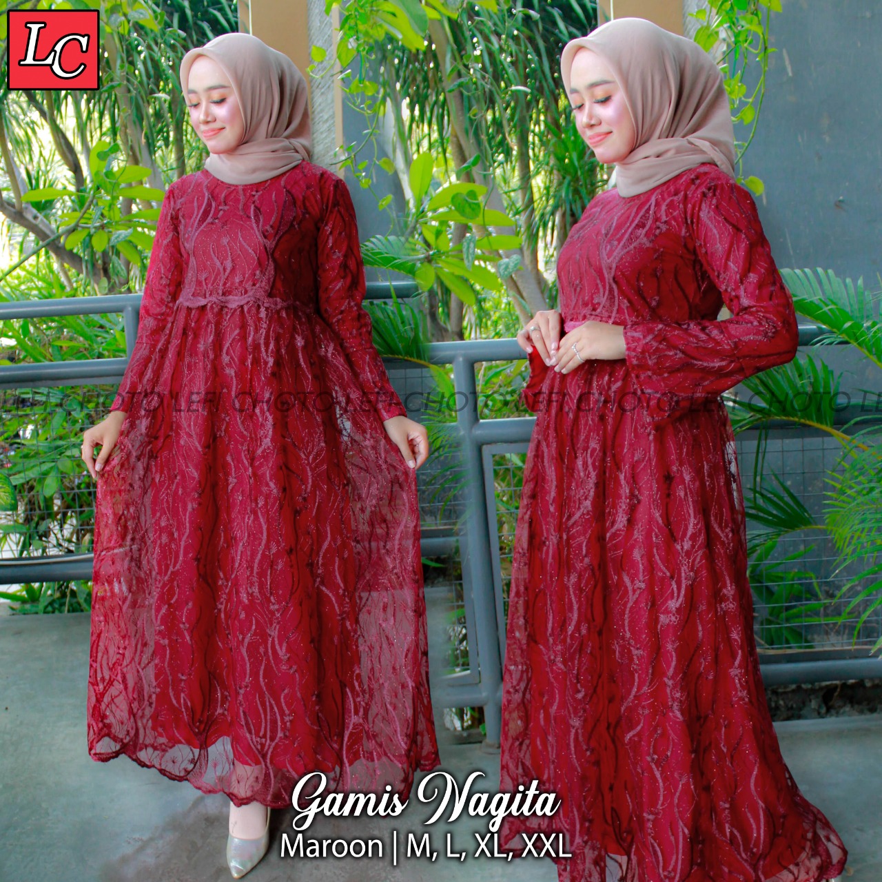 Al Gamis Maroon Syari Gamis Brokat Marun Baju Pesta Baju Brukat Cantik Tile Shopee Indonesia