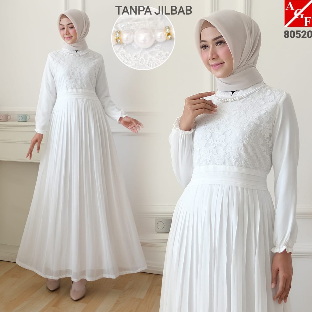 Harga Termurah Baju Gamis Pesta Remaja Wisuda Safrila Brokat Brukat Warna Putih Shopee Indonesia