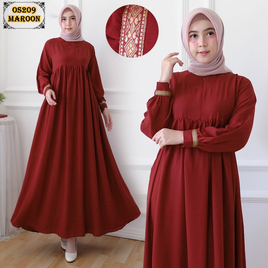 Os Gamis Wolfis Os209 Maroon Gamis Babydoll Gamis Bumil Gamis Cantik Gamis Polos Gamis Wolfis Shopee Indonesia