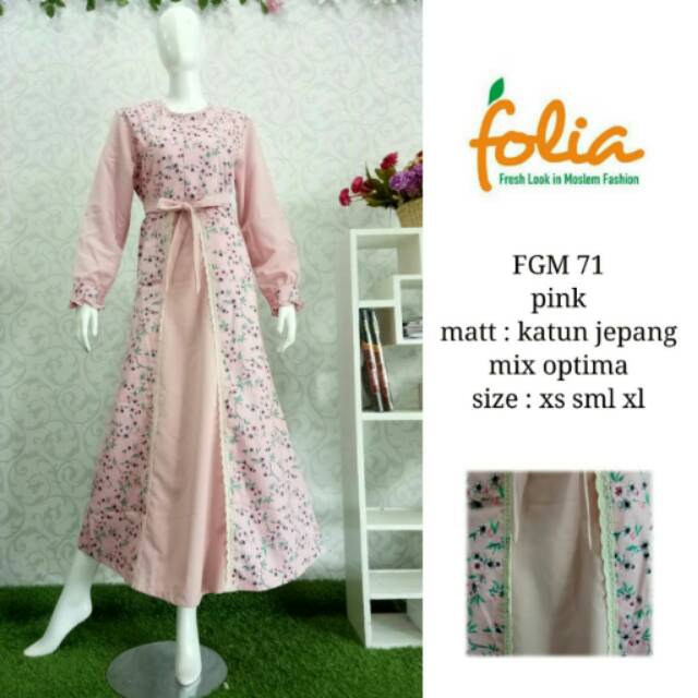 Folia Gamis Fgm 71 Warna Pink Gamis Katun Jepang Motif Bunga Busui Resleting Depan Murah Kekinian Shopee Indonesia