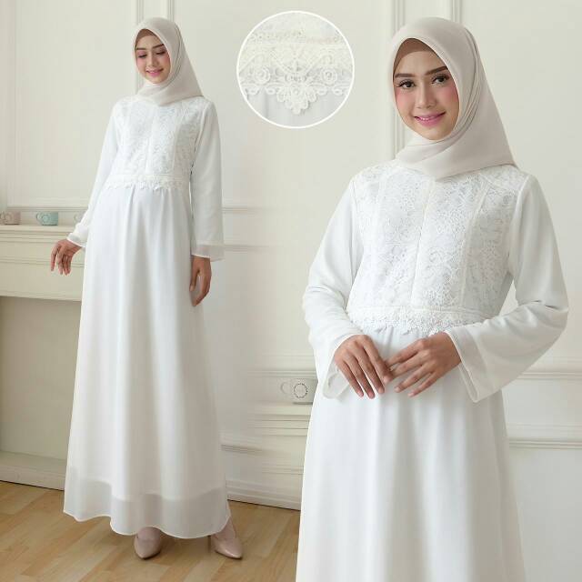 Baju Gamis Ceruti Kombinasi Modern Kimzy Warna Putih Modelgamismodern Com
