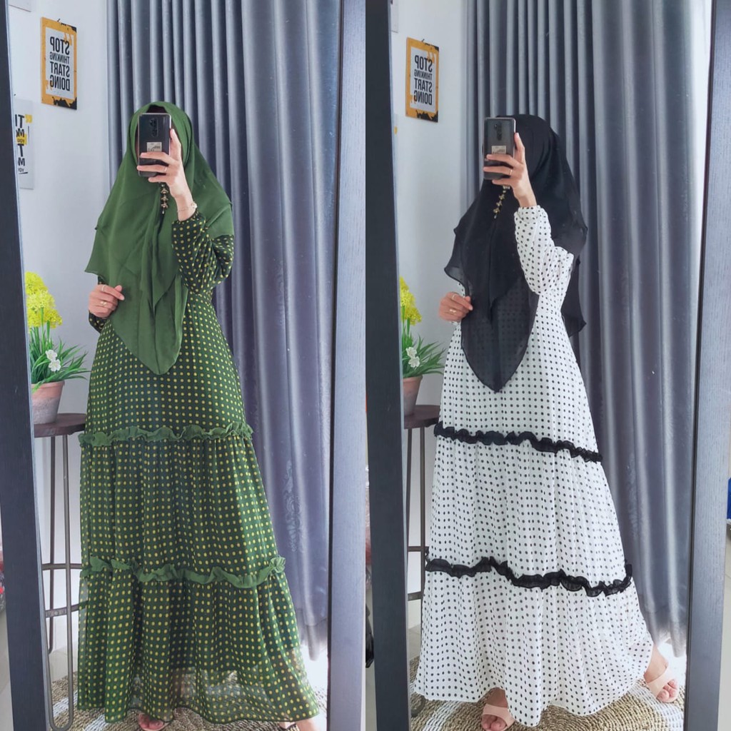 Gamis Motif Polkadot Terbaru Baju Syari Muslim Wanita Aisyah Maxt Dress Ori Spassy Lazada Indonesia