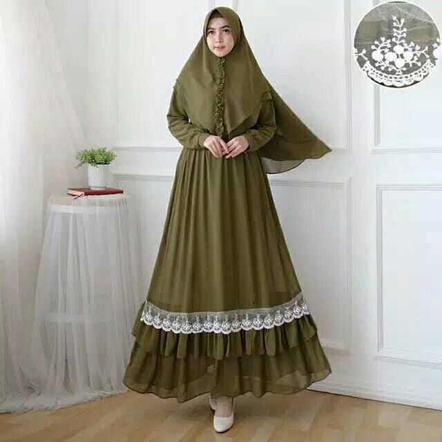 Gamis Ceruti Ceruty Babydoll Polos Renda Full Furing Khimar Layer Pastela Syari Busui Dress Shopee Indonesia