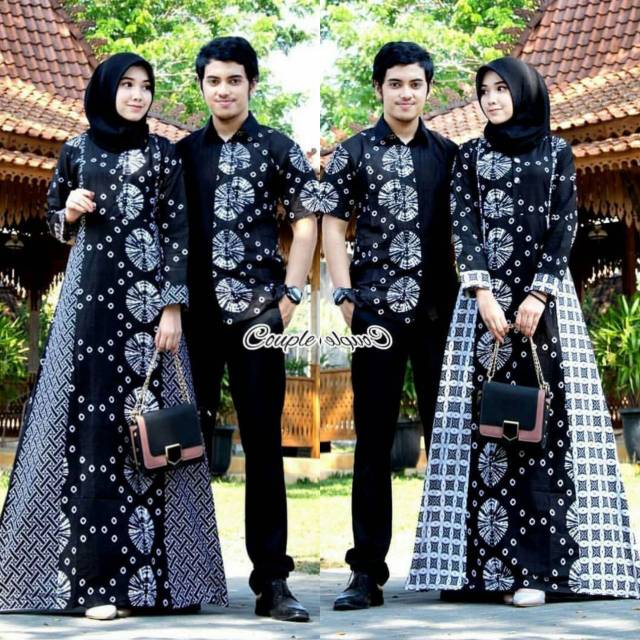 Couple Batik Gamis Monochrome 2438 Batik Kombinasi Batik Modern Fashion Muslim Fashion Wanita Gamis Shopee Indonesia