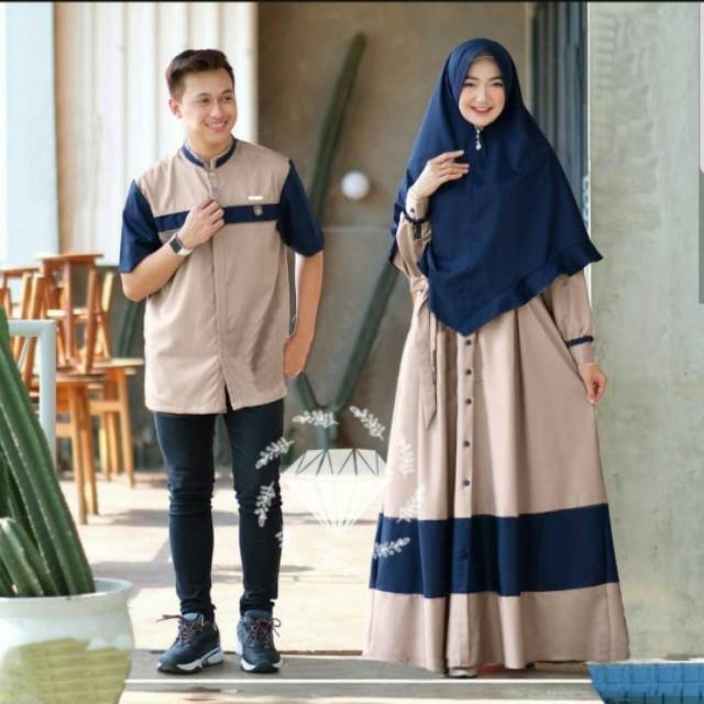 Gamis Couple Hafiz Couple Muslim Couple Dewasa Warna Abu Tua Kombinasi Hitam Shopee Indonesia