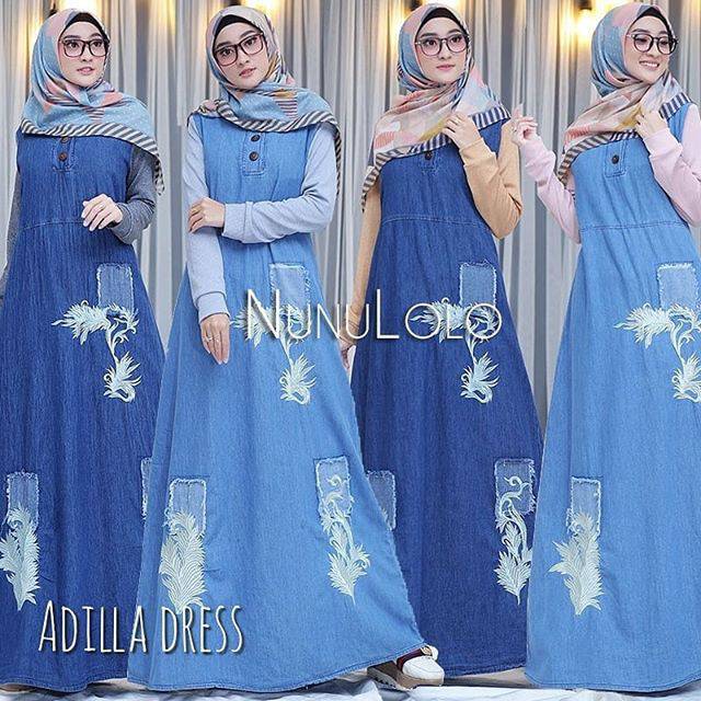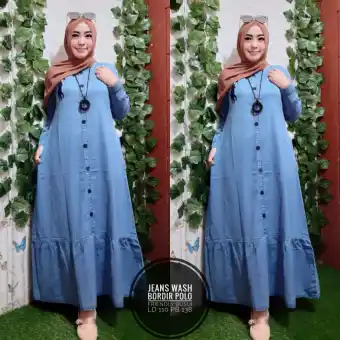 Jual Baju Muslim Wanita Baju Gamis Dress Denim Dress Jeans Dress Jumbo Gamis Denim Jumbo Jeans Gamis Jeans Adem Floria Di Lapak Momo Shop Bukalapak