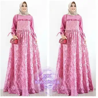 Gamis Pesta Gamis Dewasa Kombinasi Brukat Embos Jaguar Malika Mocca Shopee Indonesia
