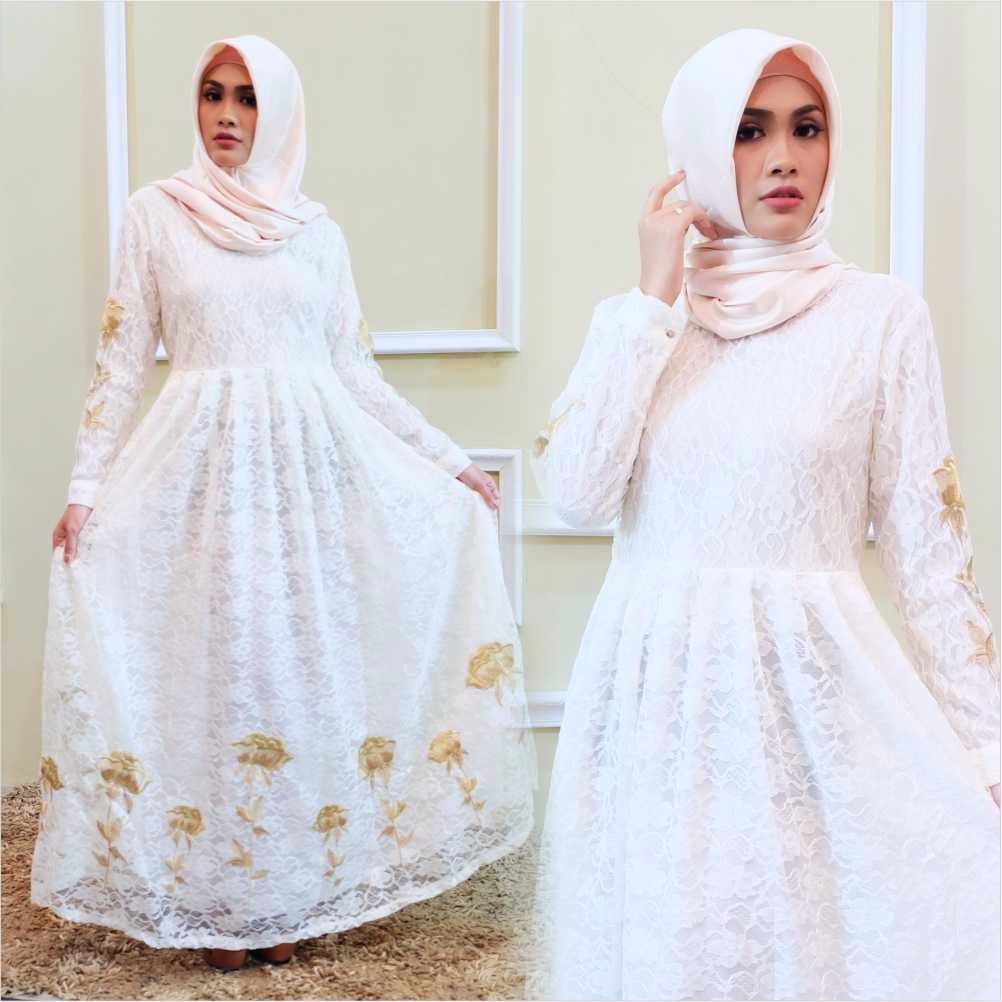 Jual Long Dress Brokat Putih Muslim Wanita Jumbo 5459 Gamis Syari Mermaid Putih Jakarta Pusat Elbensa Tokopedia