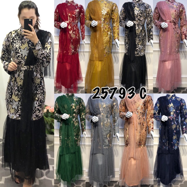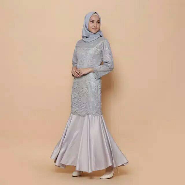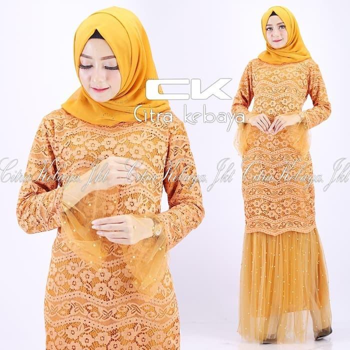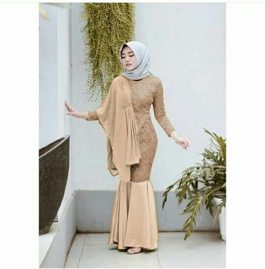 Baju Gamis Pesta Mewah Dan Elegan Rok Duyung Selendang Bahu Brokat Satin Peach Model Pakaian Muslim Pakaian Wanita Model Pakaian Hijab