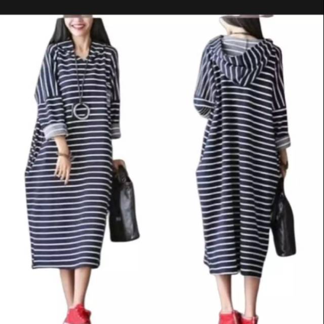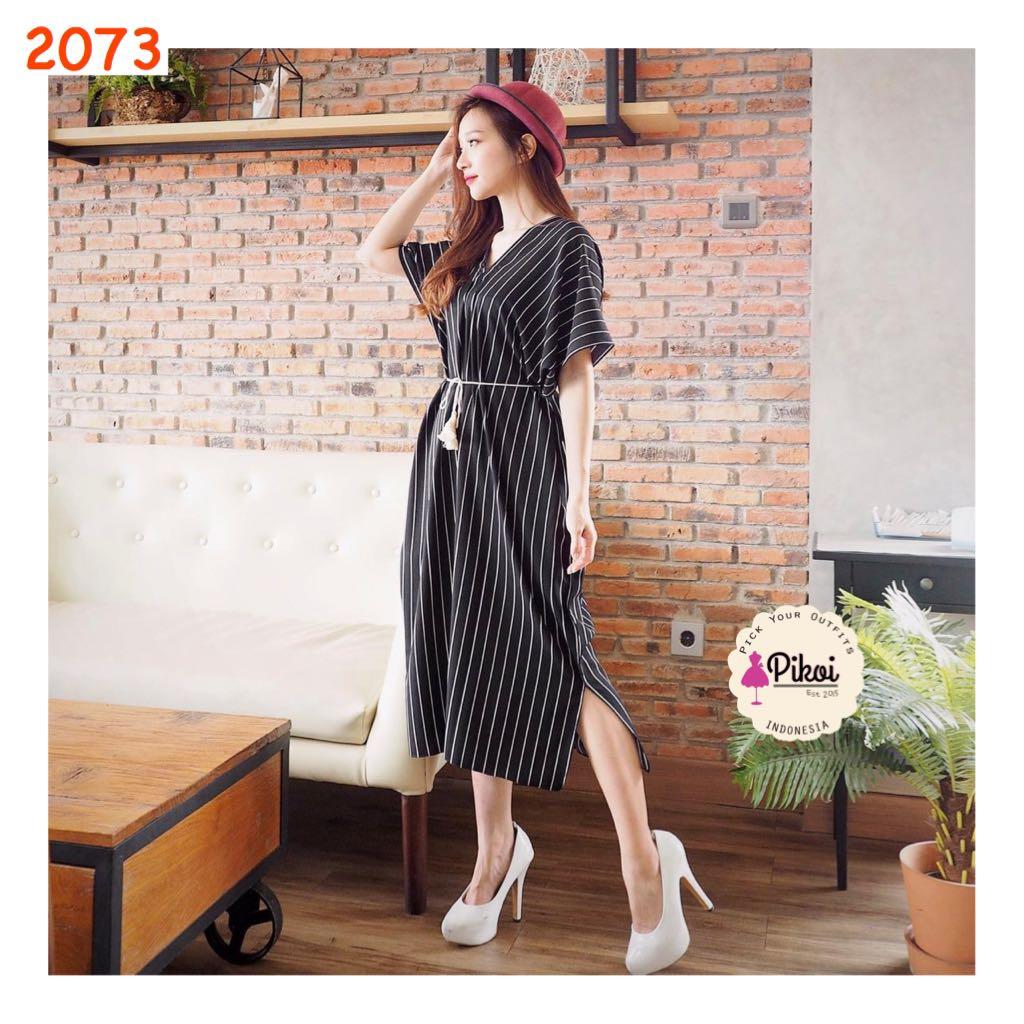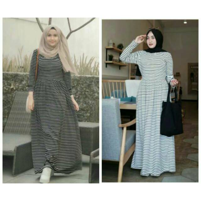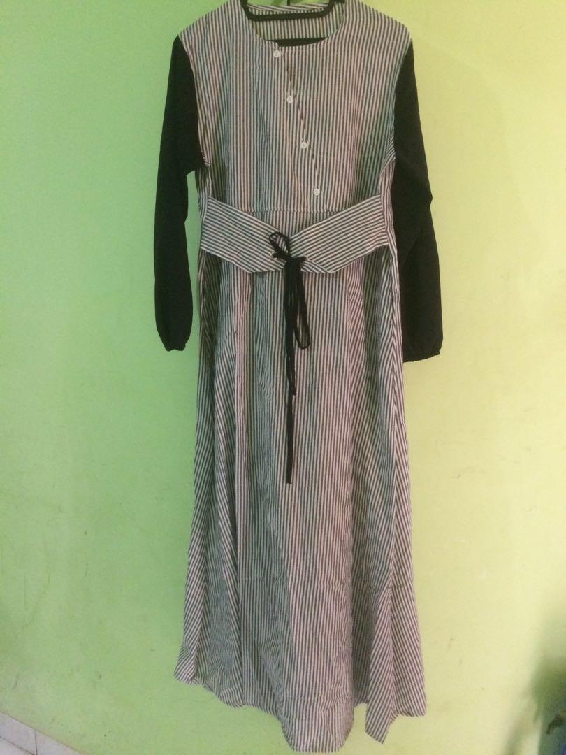 Gamis Dress Panjang Hitam Putih Garis Fesyen Wanita Pakaian Wanita Gaun Rok Di Carousell
