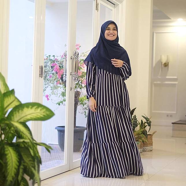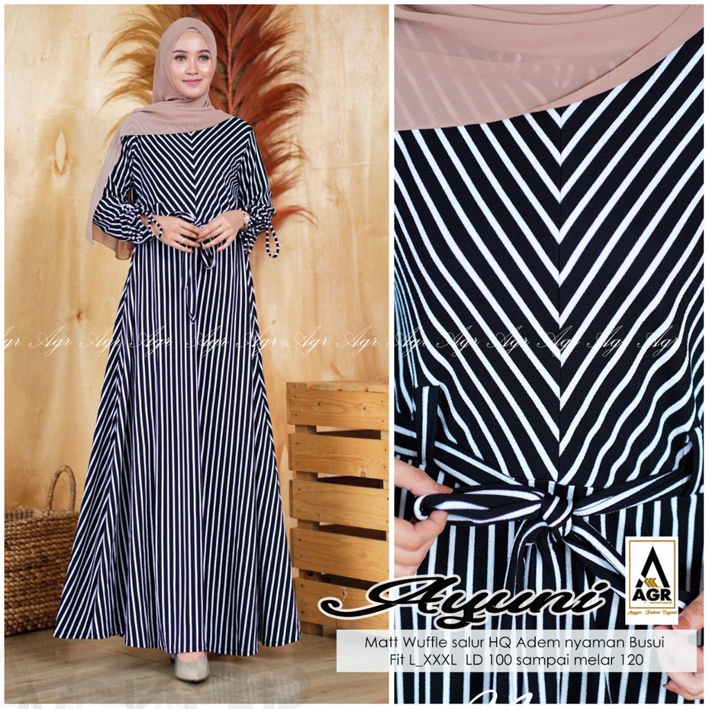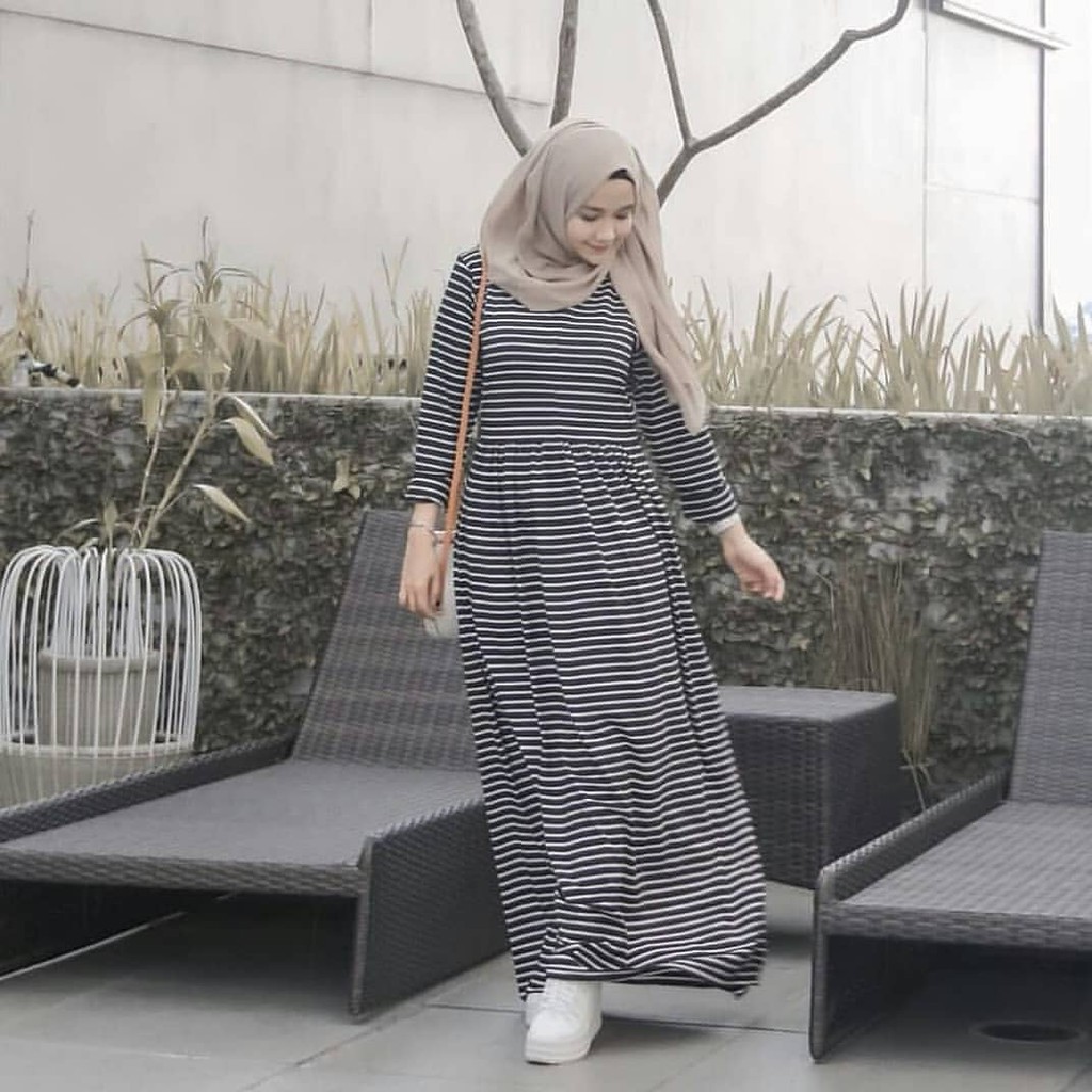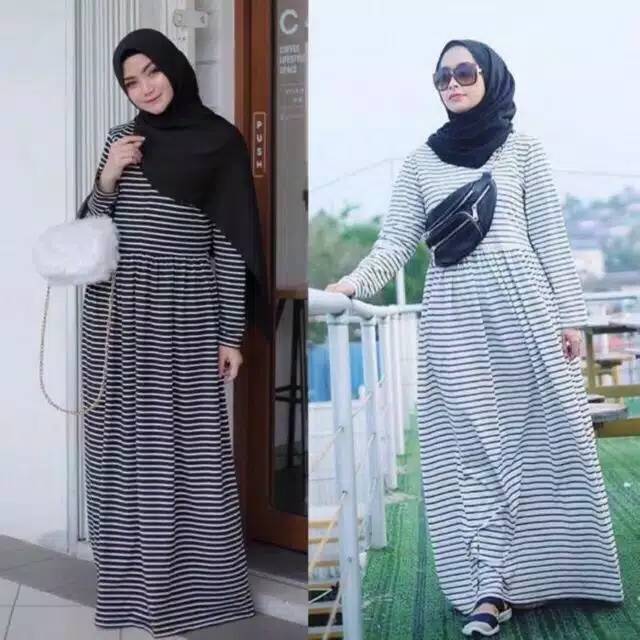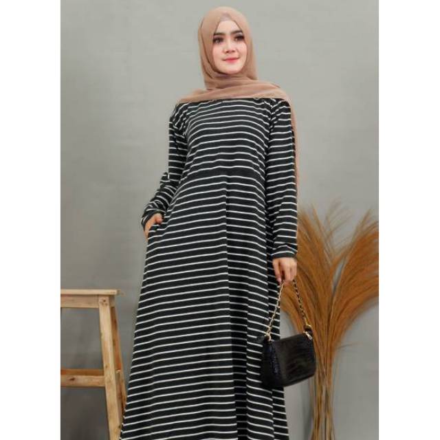 Sfs Laela Maxy Dress Gamis Syari Salur Stripe Garis Hitam Putih Simple Elegan Modis Modern Trendy Murah Wanita Sale Busana Muslim Wanita Baju Muslim Perlengkapan Sholat Fashion Wanita