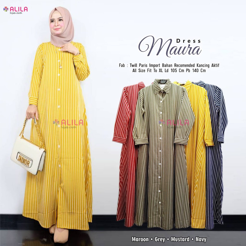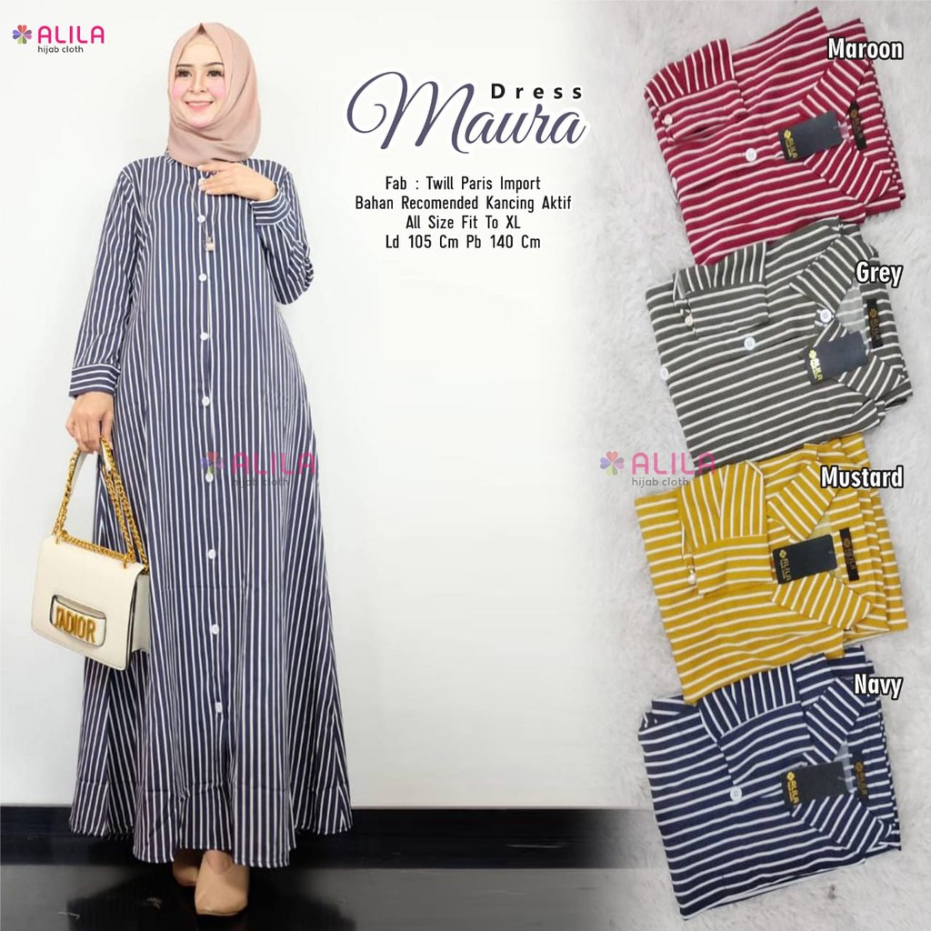 Maura I Baju Gamis Motif Garis Bahan Twill Paris Import Full Kancing Depan I Gamis Busui Shopee Indonesia