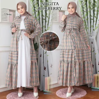 Long Outer Wanita Muslim Hijab Motif Bulberry Kekinian Lengan Panjang Full Kancing Depan Rok Payung Jumbo Terbaru 2020 Gamis 2 In 1long Outer Ala Nagita Maron Abu Abu Hijau Coklat Susu Gamis Remaja