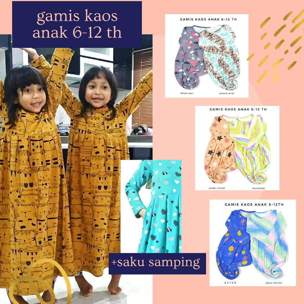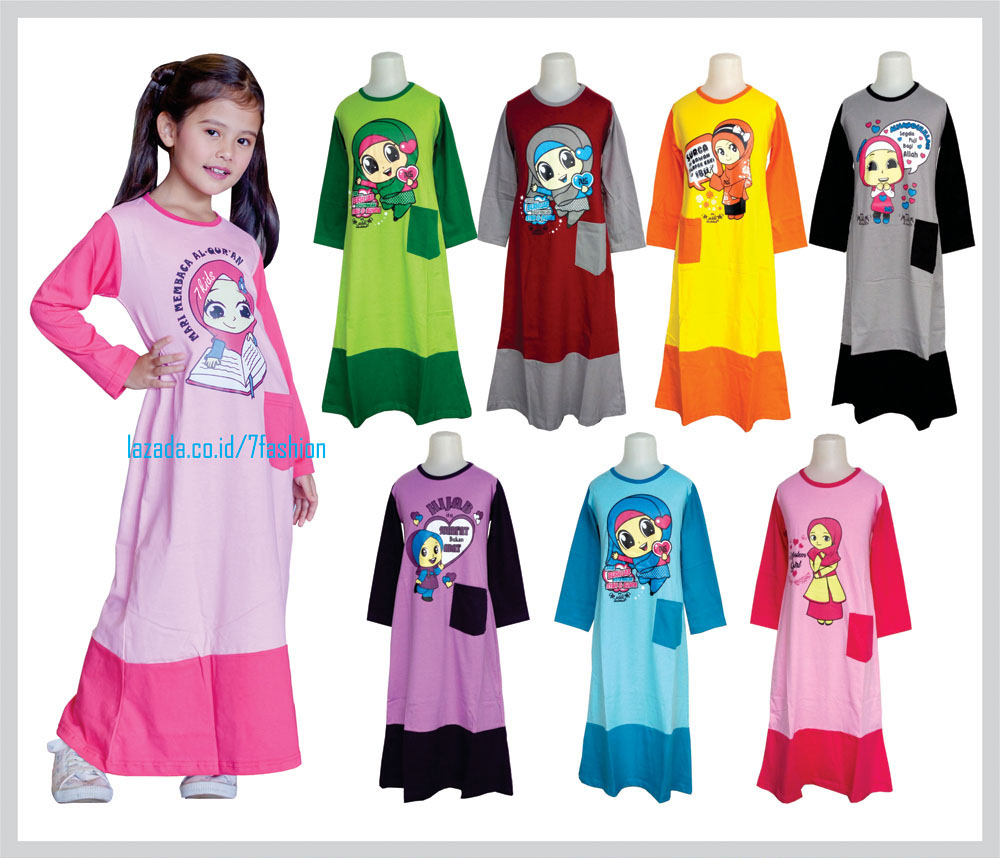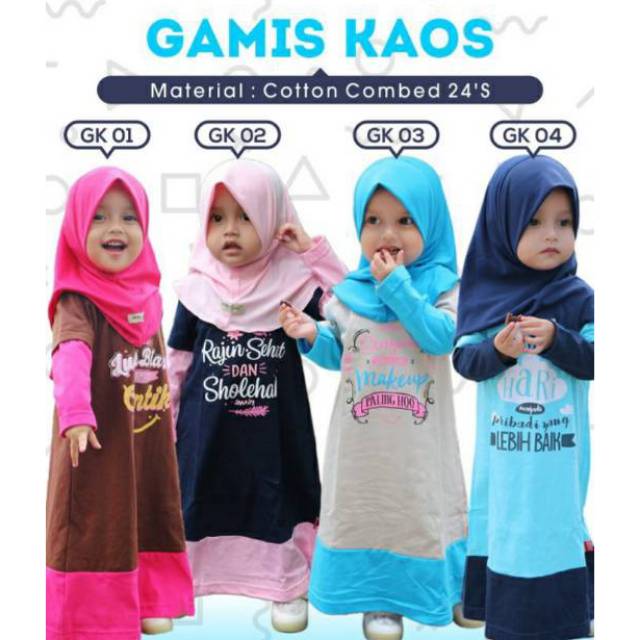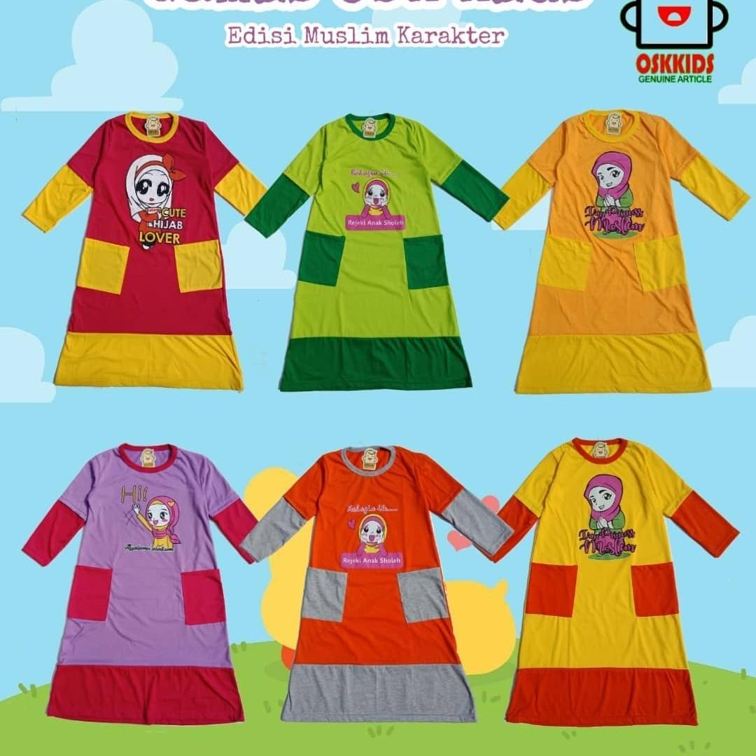 Baju Gamis Muslim Anak Konveksi Oka Oke Menggunakan Bahan Kaos Kombi Katun Dengan Berbagai Pilihan Motif Warna Baju Anak Pakaian Anak Gaya Busana