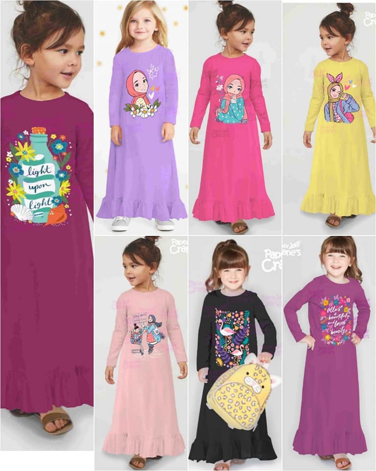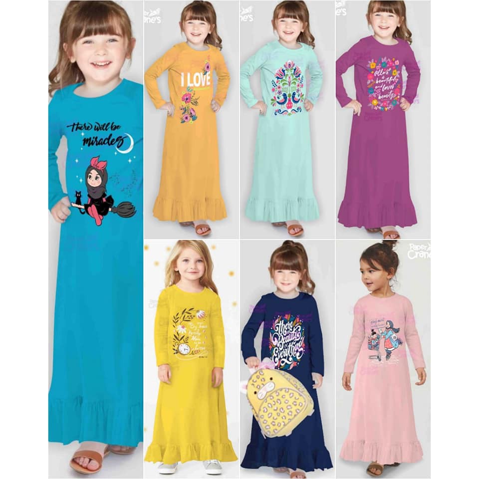 Gamis Kaos Anak Paper Crane S Baju Muslim Anak Perempuan 2 12 Tahun Warna Cerah Lazada Indonesia