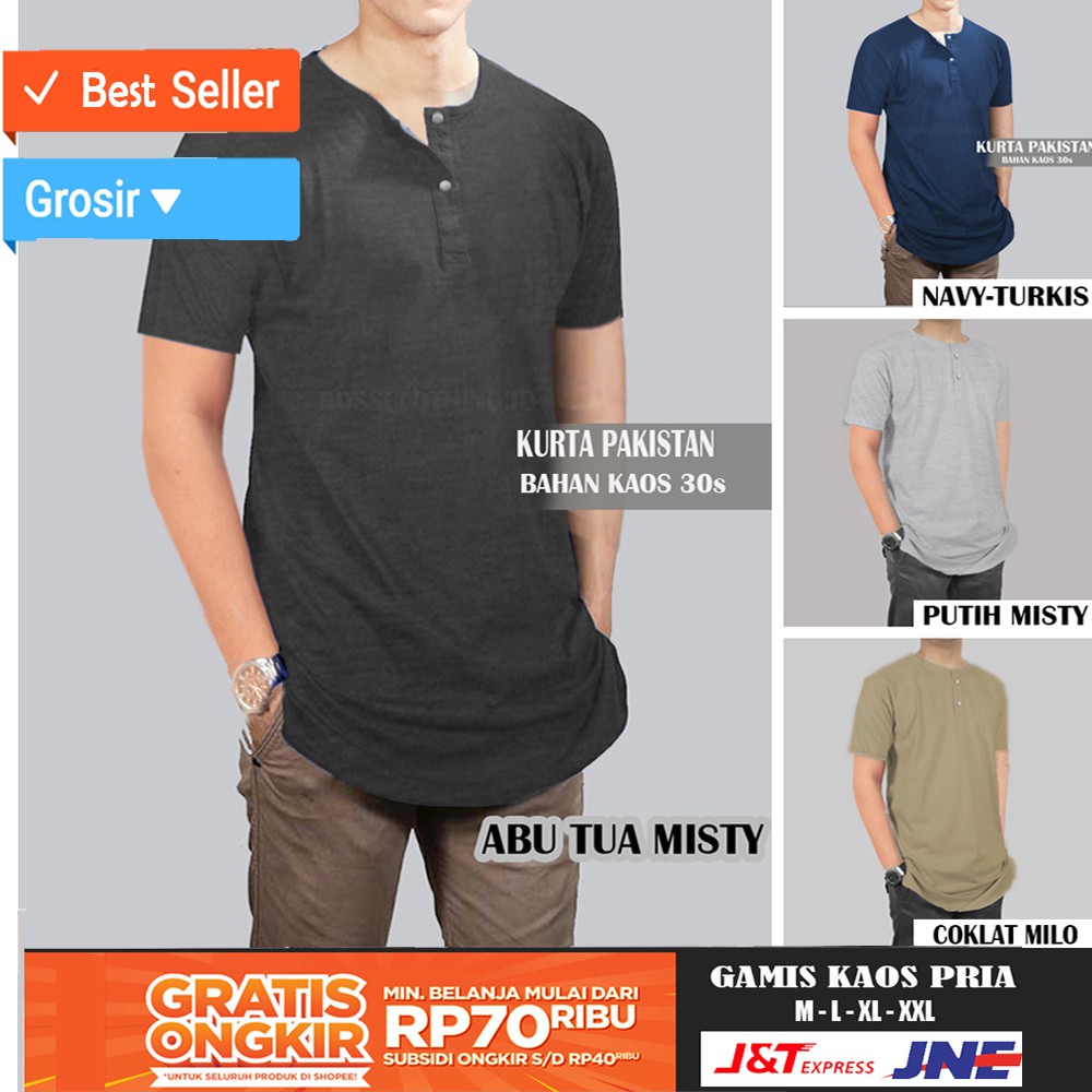 Gamis Kaos Pria Kurta Pakistan Busana Muslim Pria Baju Muslim Perlengkapan Sholat Fashion Pria Bukalapak Com Inkuiri Com