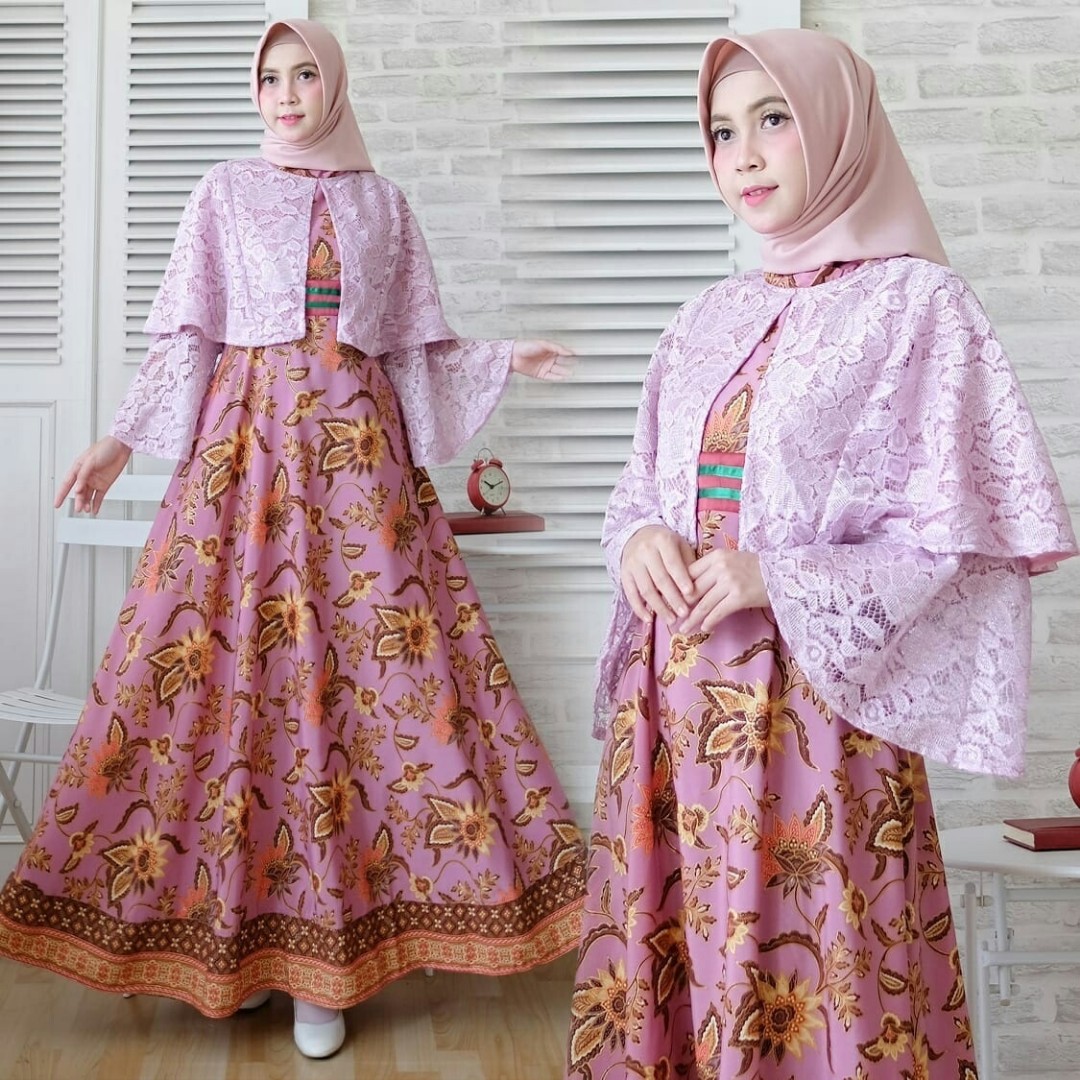 Gamis Batik Kombinasi Kain Polos Model Terbaru 2017 Dress Brokat Gaun Modern Busana Muslimah
