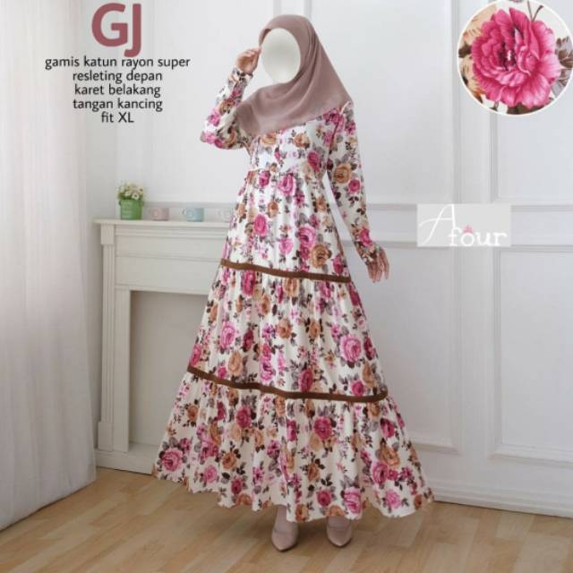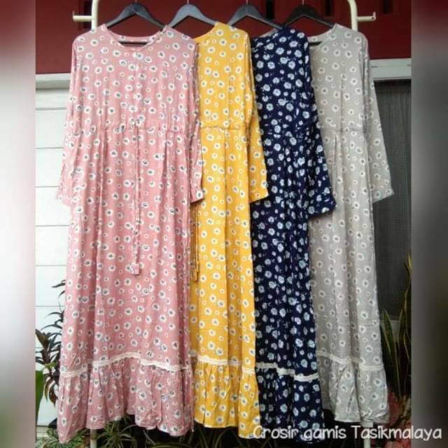 Dinar Baju Gamis Katun Rayon Renda Import Jumbo Ld110 120 Motif Bunga Terbaru Kekinian Favorit Shopee Indonesia