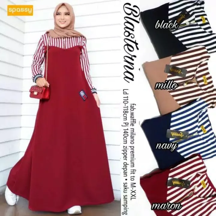 Gamis Blasterina Dress Wanita Terbaru Gamis Kombinasi Terbaru Gamis Wanita Terbaru Lazada Indonesia