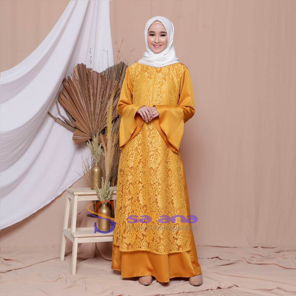 Jual Safana Gamis Maxmara Kombinasi Brukat Premium Warna Kuning Mustard Sfg04 2 Di Lapak Widianto Bukalapak