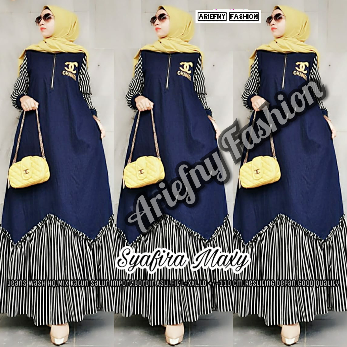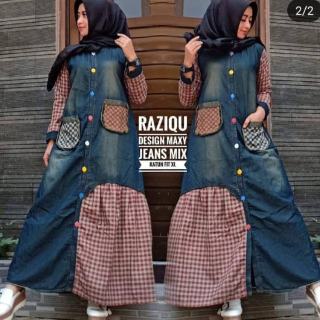 Gamis Jeans Kombinasi Gamis Levis Mix Gamis Jeans Gamis Murah Gamis Wanita Gamis Muslim Wanita Syabira Maxy Lazada Indonesia