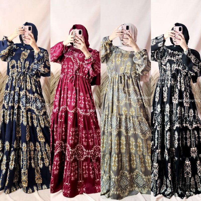 Gamis Sultan Long Dress Gamis Vintage Import Premium Mewah Motif Channel Bangkok Bkk Fesyen Wanita Pakaian Wanita Gaun Rok Di Carousell