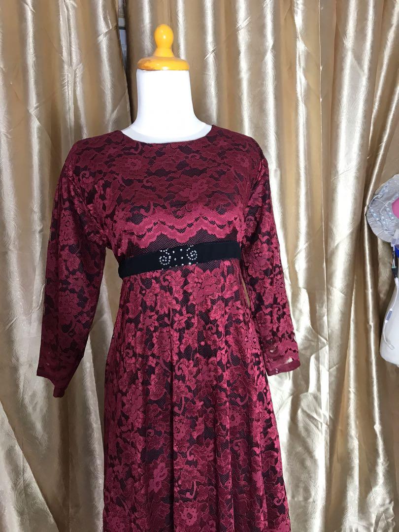 Gamis Pesta Kombinasi Brokat Oscar Maroon Jual Gamis Syar I Cantik Terbaru Murah Gamis Online Murah