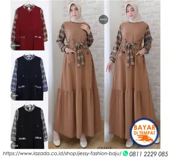 Overall Set Wanita Kotak Kotak Sar Omega Overall Gamis Modern Model Terbaru Wanita Muslim Remaja Panjang Motif Dress Kondangan Kuliah Jumpsuit Fashion Wanita Bukalapak Com Inkuiri Com