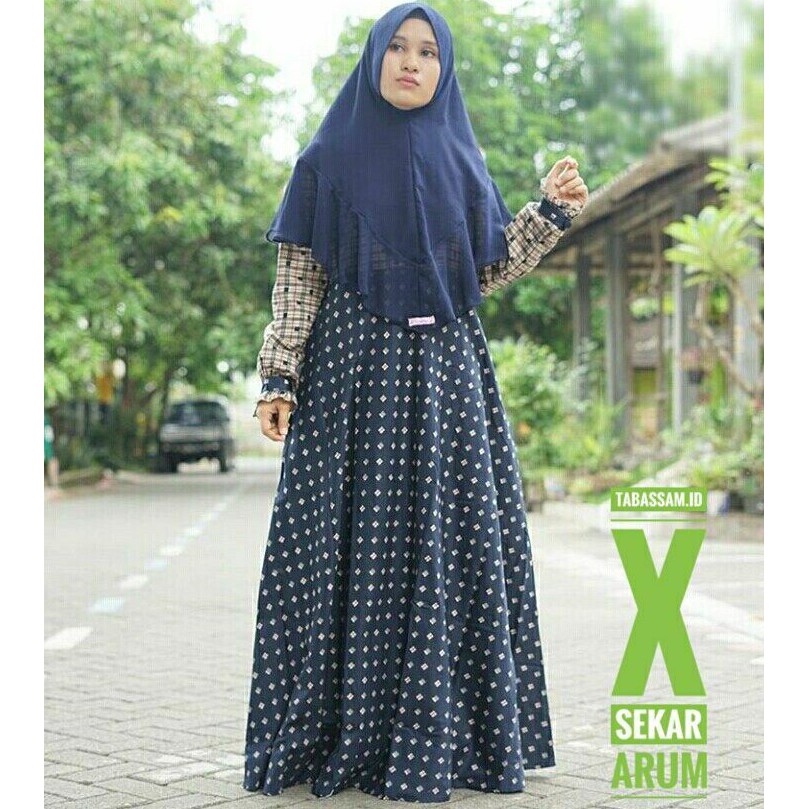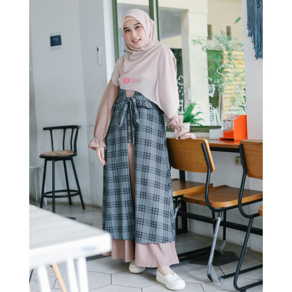 Yuuna Dress Zizara Gamis Syari Kombinasi Polos Motif Kotak Simple Remaja Busui Shopee Indonesia