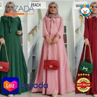 Produk Unggulan Gamis Murah Meriah Gamis Plisket Lengan Panjang Gamis Full Plisket Pita Leher Jumbo Gamis Terbaru 2020 Modern Cod Lazada Indonesia