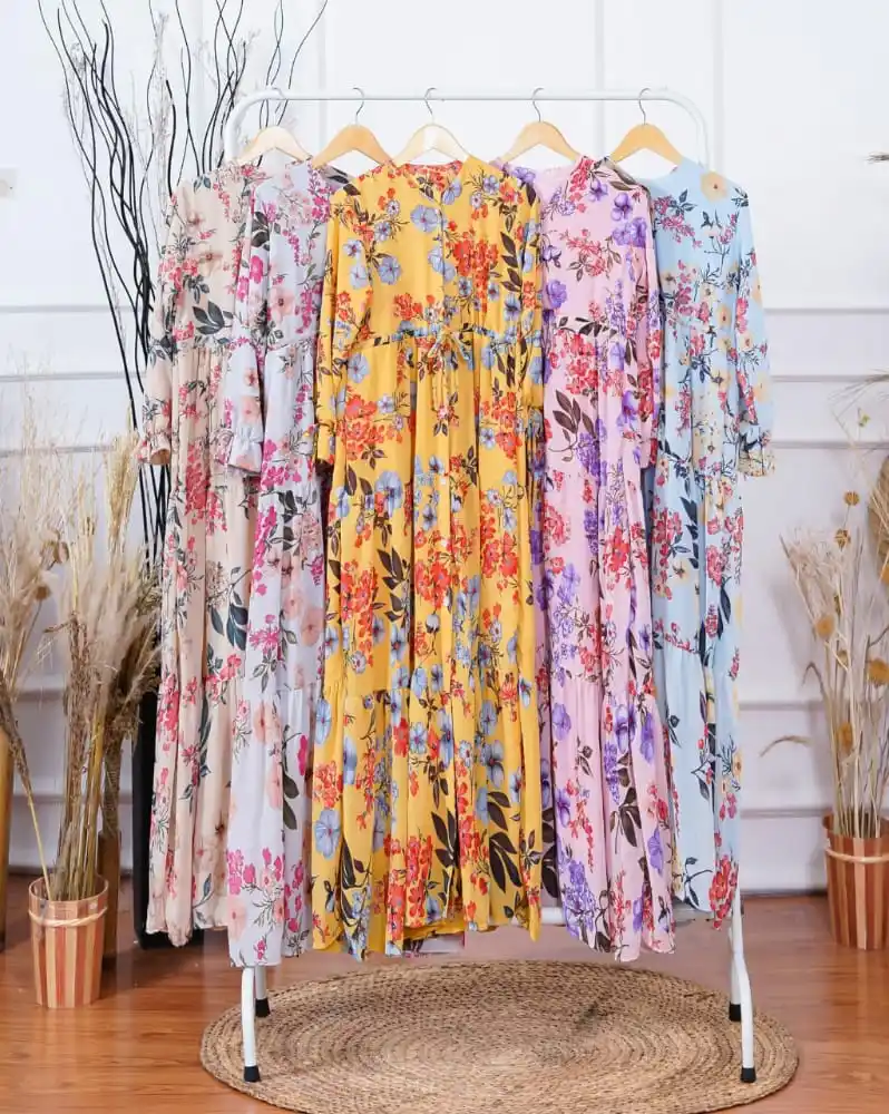 Gamis Nagita Dress Wanita Motif Floral Terbaru Long Dress Nagita Karin Fashion Lazada Indonesia