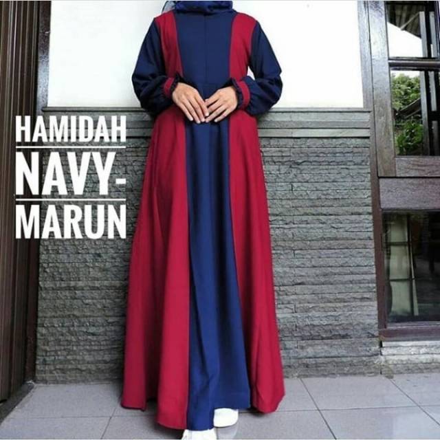 Jual Gamis Kombinasi Warna Dress Muslimah Fashion Cewe Navy Hitam Maroon Bekasi Dedosel Shop Tokopedia