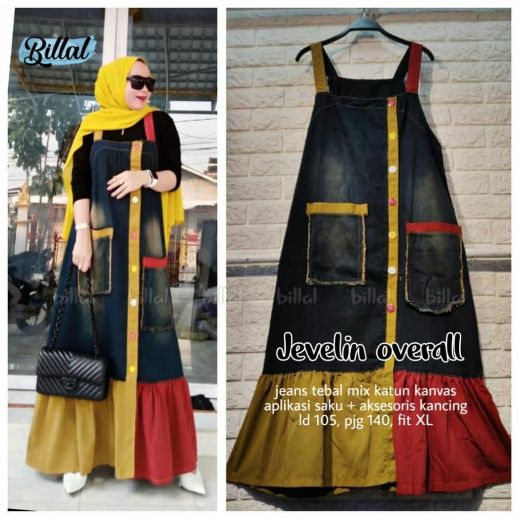 Grosir Jumpsuit Rok Panjang Gamis Overall Jeans Terbaru Kasyfa Shop