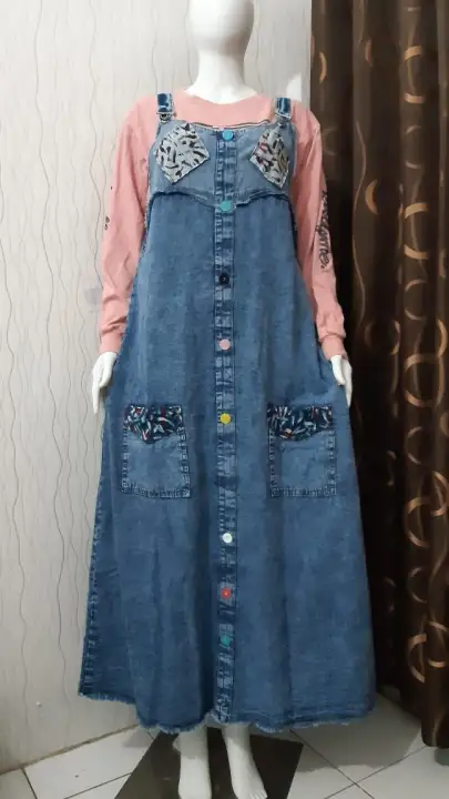 Hima Overall Jeans Overall Jeans Motif Terbaru Overall Rok Jeans Rok Kodok Jeans Terbaru Baju Muslim Wanita Gamis Jeans Rawis Gamis Tempel Lazada Indonesia