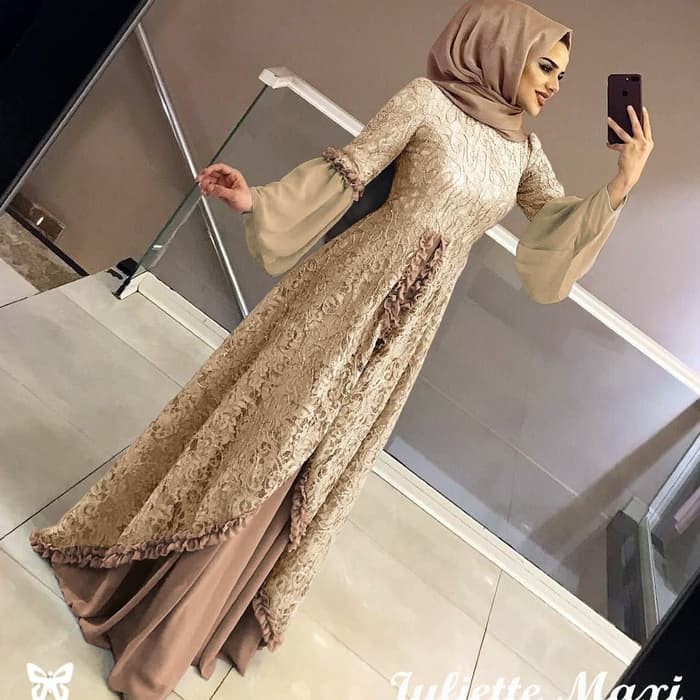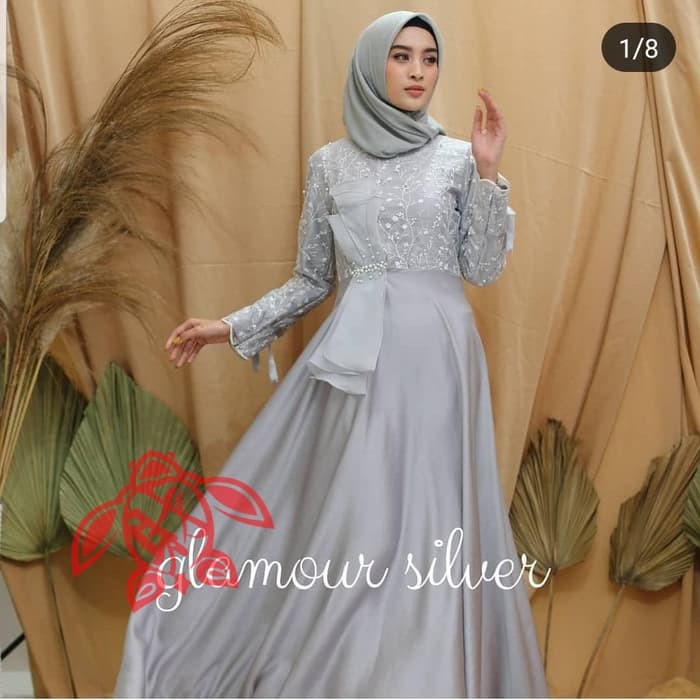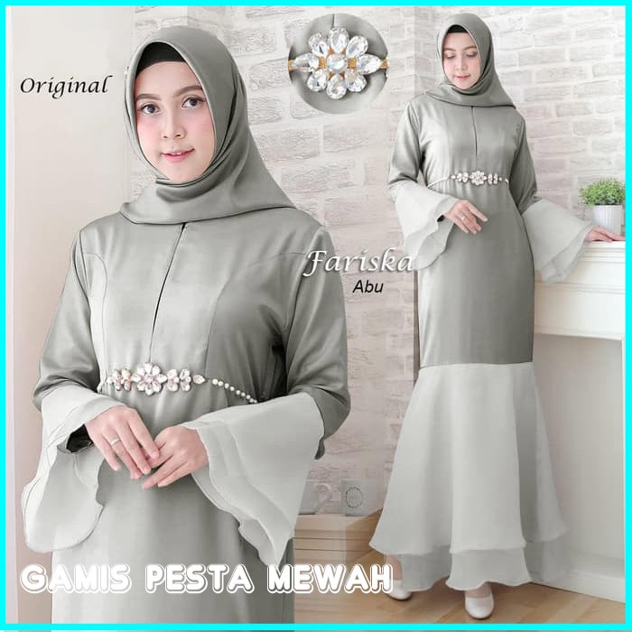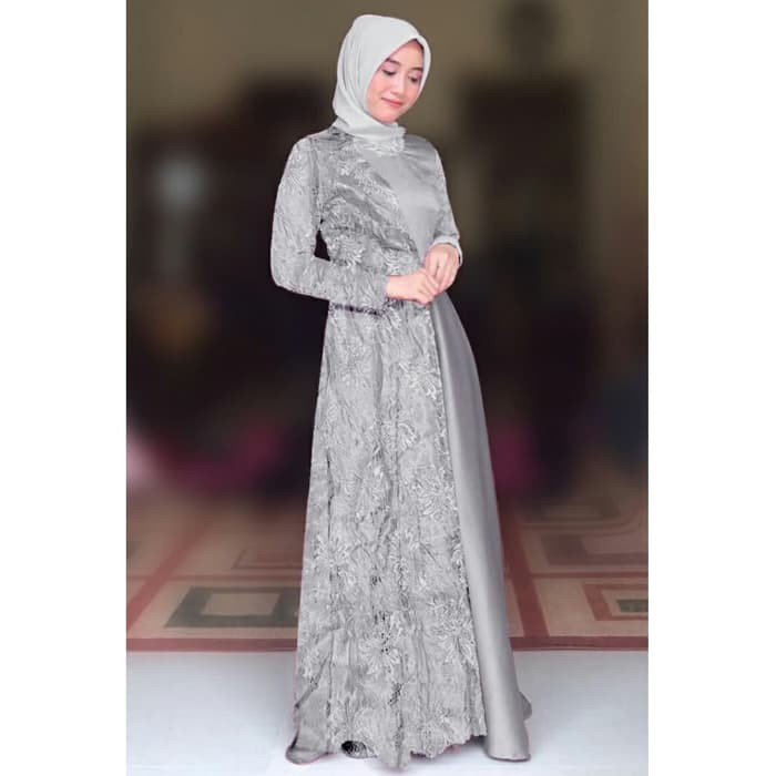 Jual Gamis Pesta Brokat Model Mermaid Baju Gamis Wanita Terbaru Ribonnia Abu Abu Limited Shopee Indonesia
